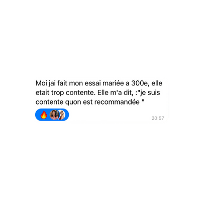 J'ai doublé, plus que doublé mon tarif mariée. Je me sens plus à l'aise, plus légitime disons, plus affirmée, plus confiante. Le format est pas mal. Télégram c'est très intéressant , surtout quand on a des questions qui apparaissent, on pas besoin d’attendre 15 jours pour sinterroger.